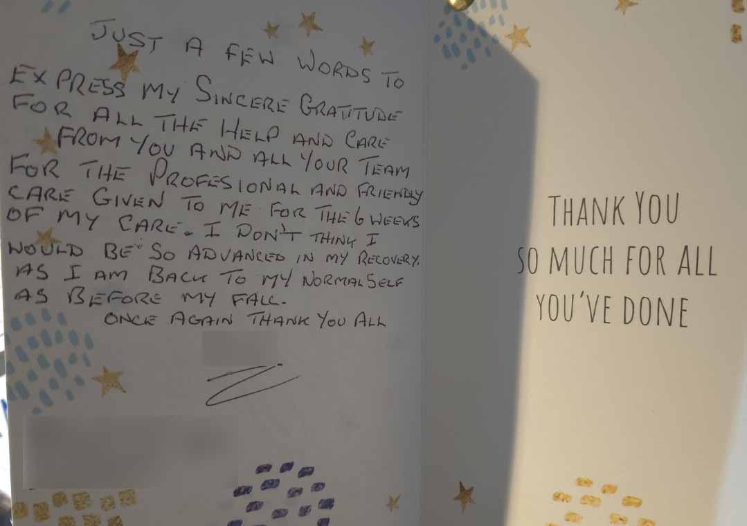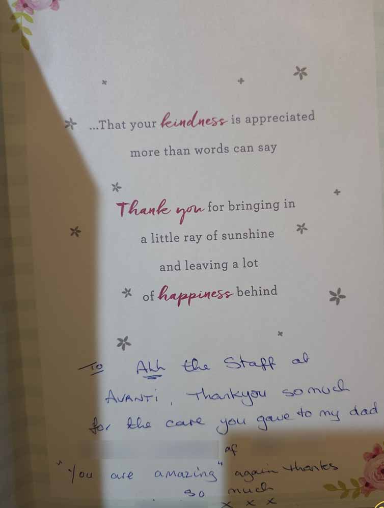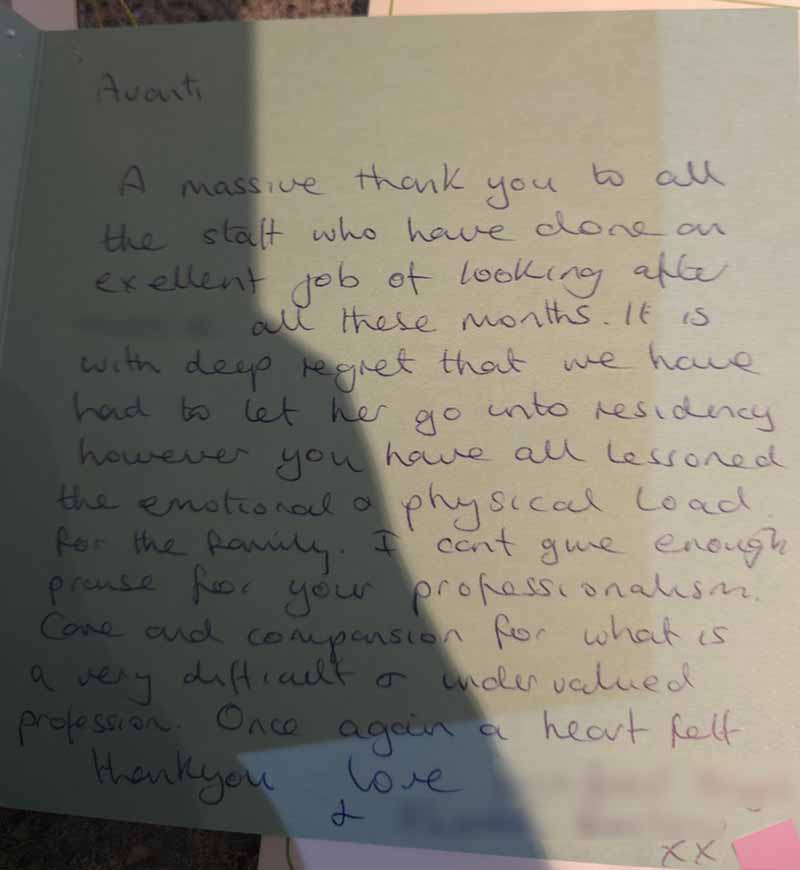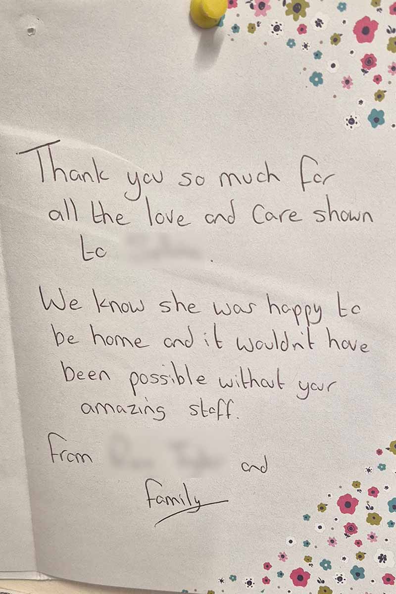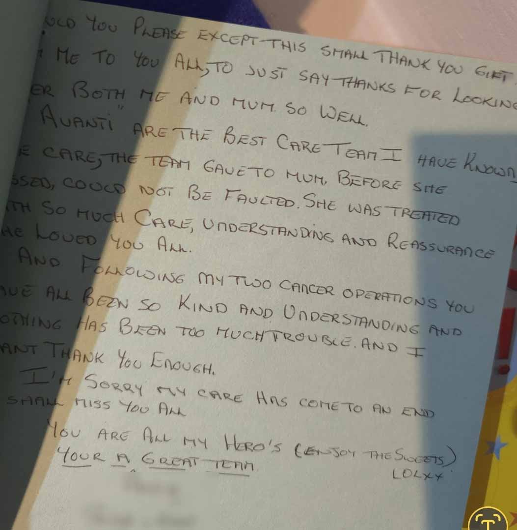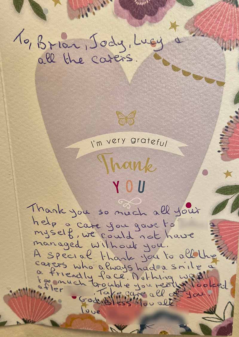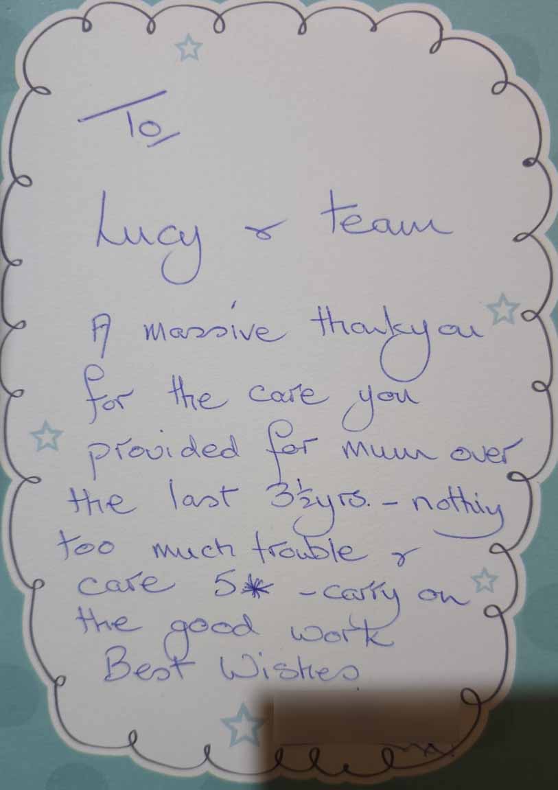 We know choosing a care company isn’t an easy decision and it’s helpful to see what other people’s experiences have been. Here are some lovely cards and letters we have received, alongside feedback via our care app and online. Occasionally we also get reviews on Google and Homecare.co.uk too.